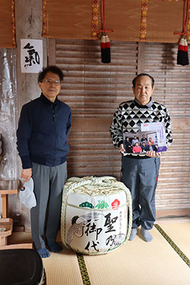常宮神社の所へ新たに新春のお酒今庄の北善さんの樽酒奉納いたし