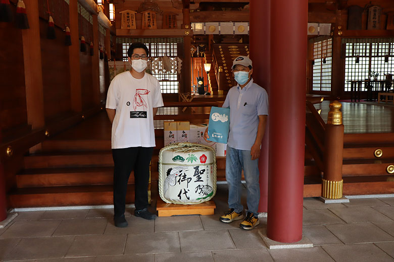 今庄の北善さんの樽酒奉納いたします