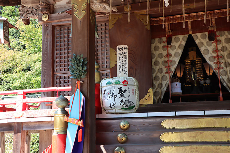 能殿での踊り、お祭りに樽酒奉納し、