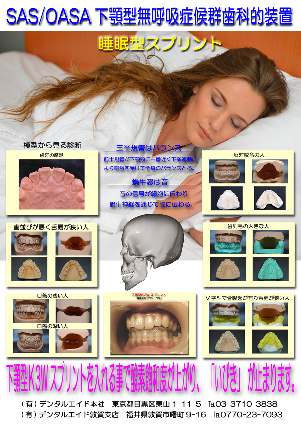 当社のホームページに記載している無呼吸症候群歯科的気道確保装置が出来る歯科医院や歯科技工所を見て頂くとお分かりになると思います。