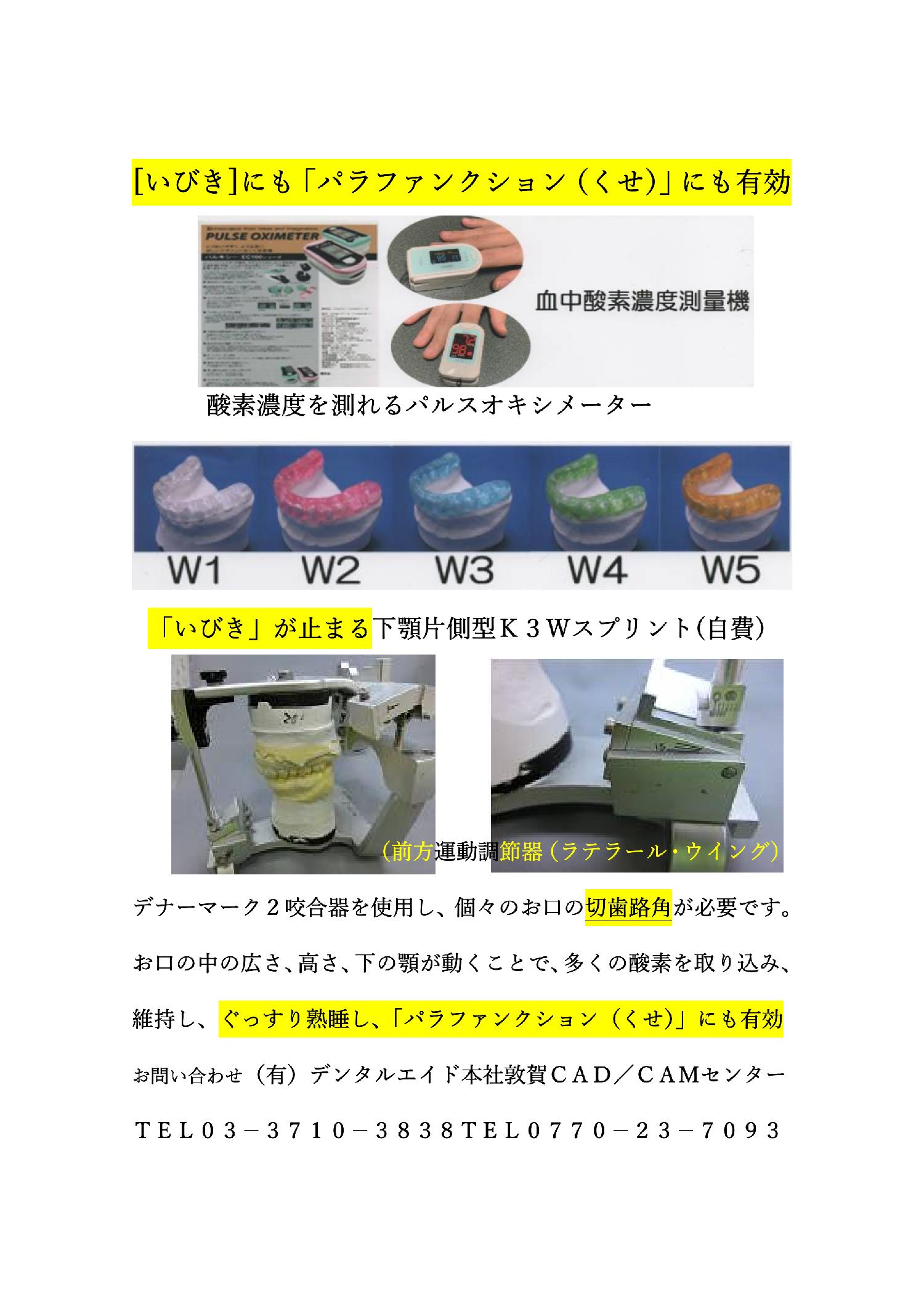 現在、フイリップスの「ウオッチパット」睡眠評価装置が出現し、製作後の評価が可能になったことは歯科技工士にとっては大きな武器になるし、歯科医院にとっても安心して患者さんに説明できお勧めすることが出来る。